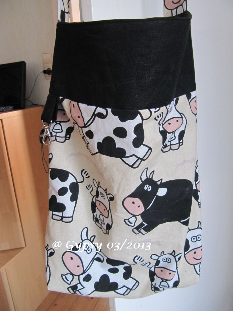 Tasche fertig genäht. Für eine Freundin, deren Mann bald operiert wird. Damit er mit Krücken Sachen mitnehmen kann.